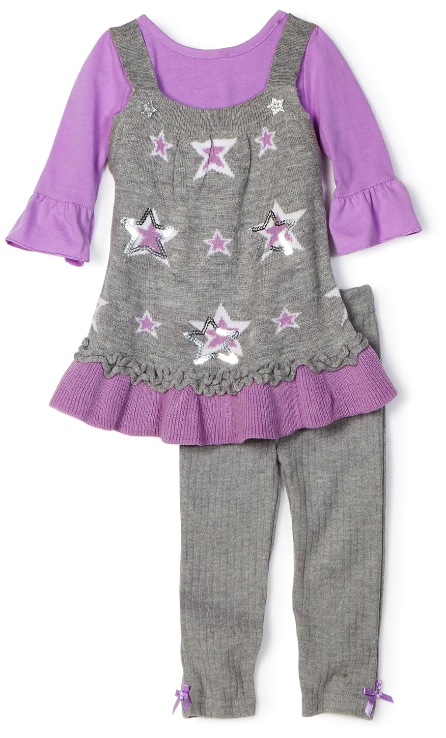 Little lass offers cute and comfortable styles with quality construction, she is adorable in this 3 piece set featuring a long sleeve t-shirt, printed sweater jumper and chunky legging